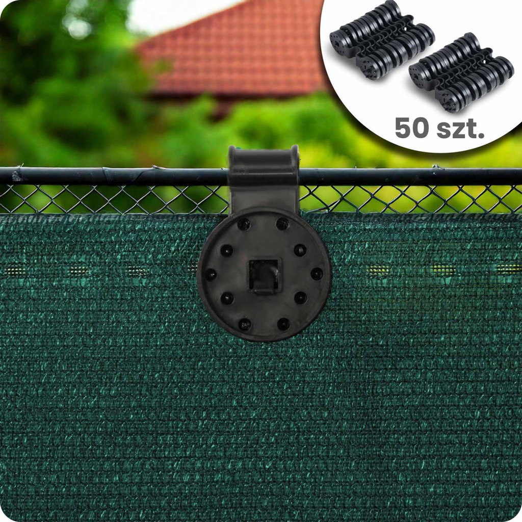 A készletben található professzionális bilincsek (50 db) jelentősen megkönnyítik a háló felszerelését. Ezeknek köszönhetően gyorsan és stabilan rögzítheti a burkolatot a kerítéshez, további szerszámok használata nélkül.