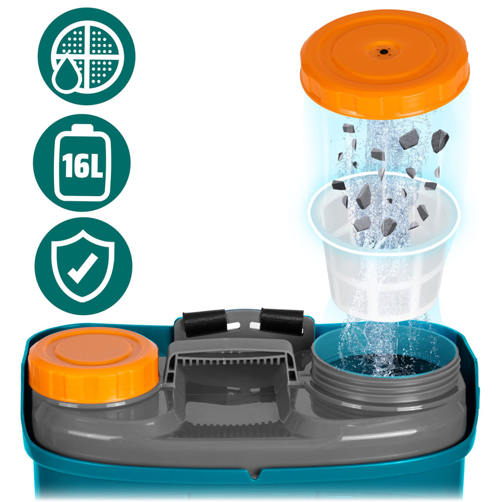 ✅ 16 literes űrtartalom: a nagyobb tartály különösen hasznos nagy kertekben vagy mezőgazdasági területeken.