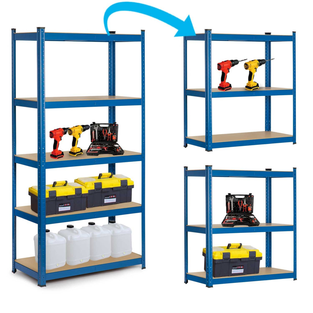 Humberg fém polc 180x90x40 cm Funkcionális és stabil kék tároló állvány, amely tökéletes: garázs levéltár raktáron üzlet pince A polc 5 polcból áll, maximális terhelhetősége 875 kg! Az Ön biztonsága érdekében lekerekített élek - teljesen kizárja a sérülés lehetőségét a polc használatakor. Főbb jellemzők: fém, horganyzott profilok, 5 tartós MDF polc, Lehetőség a polcok magasságának tetszés szerinti beállítására (40 mm-enként), középső polctartók, nagy maximális terhelés, két kisebb polcra osztható, munkapadként is használható, gyors és egyszerű betolható összeszerelés, nincs szükség csavarokra, A műanyag lábvédők jobb stabilitást biztosítanak, és nem karcolják meg a padlót. Szerelje szét a polcot két kisebbre: tetszőleges számú polc használatával, jobb helygazdálkodás. Műszaki adatok: szín: kék méretei: 180 x 90 x 40 cm polcok száma: 5 db. MDF polcok középső polctartók védőburkolatok 8 db-os készletben maximális polcterhelés: 175 kg maximális összterhelés: 875 kg szerelési mód: csavarmentes (betolható)