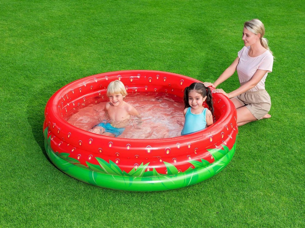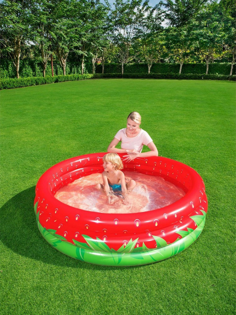 A baba első úszómedencéje! Az ünnepek alatt a gyerekek szeretnek a szabadban tölteni az időt, hogy így vonzóbbá tegyük mindennapi szórakozásukat? válassza a Bestway felfújható medencét. A bemutatott medencét egy igazán masszív felépítés jellemzi, amely három független felfújható gyűrűből áll. A vastagságuknak és a szilárd kivitelnek köszönhetően biztosítják a teljes szerkezet stabilitását, és kényelmes háttámlaként szolgálnak a gyermekek számára. A medence alja puha és kényelmes ülést biztosít számukra. Főbb jellemzők: eper minta puha, felfújható falak 3 felfújható gyűrű javítófolt mellékelve Műszaki adatok: Méretek: 160 x 38 cm Anyaga: PVC Súly: 1,8 kg Medence kapacitása: 390 liter Ajánlott életkor: 2 éves kortól