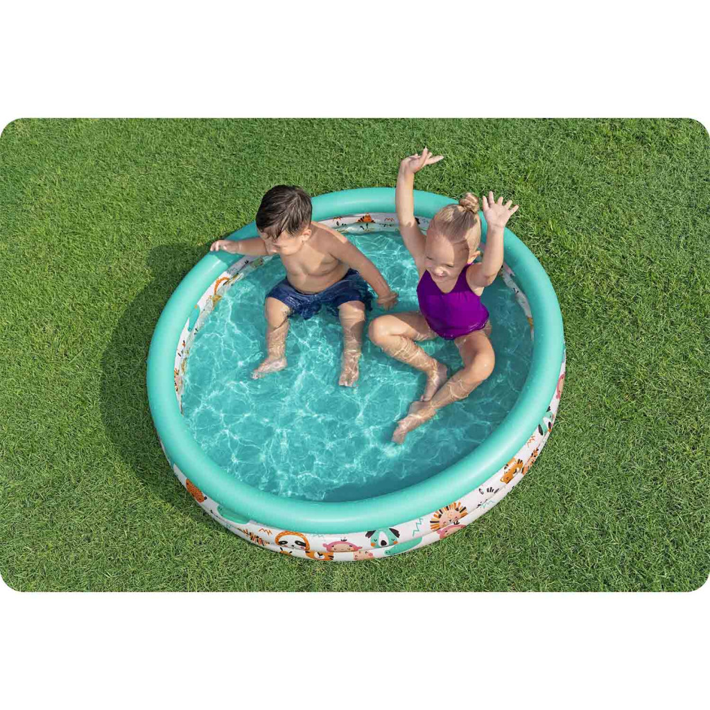 Felfújható medence Hal 122 x 25 cm Bestway 51226 Gyermekeid első medencéje! A Bestway felfújható halmedence tökéletes a kertbe. A medence puha felfújható falai kisgyermekek számára és csodálatos színek. Az átlátszó falak színes halakkal 3 felfújható gyűrűből állnak. Főbb jellemzők: a mélység gyönyörű mintája puha, felfújható falak 3 felfújható gyűrű javítófolt mellékelve Műszaki adatok: Méretek: 122 x 25 cm Anyaga: PVC Súly: 0,65 kg Medence kapacitása: 140 liter Ajánlott életkor: 2 éves kortól