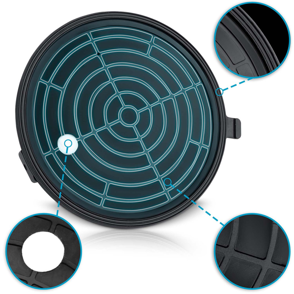 Egy speciális, háromrétegű gumitömítés kiváló tapadást, megbízható tömítettséget és hatékony rezgéscsillapítást biztosít.