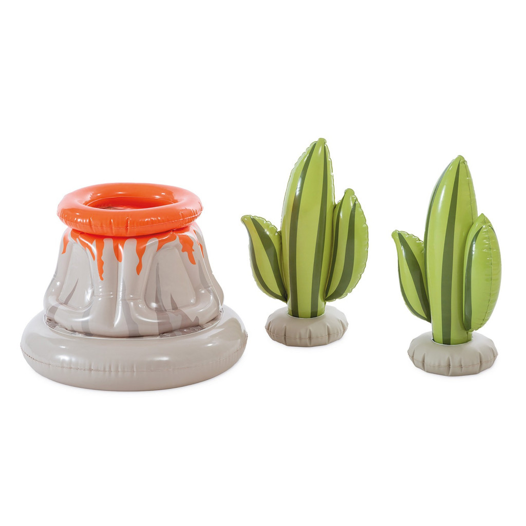 Jurassic Park vízi játszótér 244 x 198 x 71 cm INTEX 57161 Vízi szórakozás a saját kertedben! Ez a felfújható Jurassic Park nem csak kerti aquaparkként, hanem száraz úszómedenceként is működik a hidegebb napokon. A felfújható játszótér 2 éven felüli gyerekeknek is alkalmas, de nagyobb gyerekeknek is örömet okoz, több órás szórakozást biztosítva. Főbb jellemzők: színes, jura design; 3 felfújható dinoszaurusz; két felfújható növény felfújható vulkán; nagy medencekapacitás - akár 410 liter; 5 színes golyó; tartós vinil - kopásálló; javítófolt mellékelve. Műszaki adatok: Méretek: 201 x 201 x 36 cm Vízszint magasság: 11 cm Anyaga: PVC Maximális terhelés: 81 kg Ajánlott életkor: 2 év felett Javító folt: mellékelve