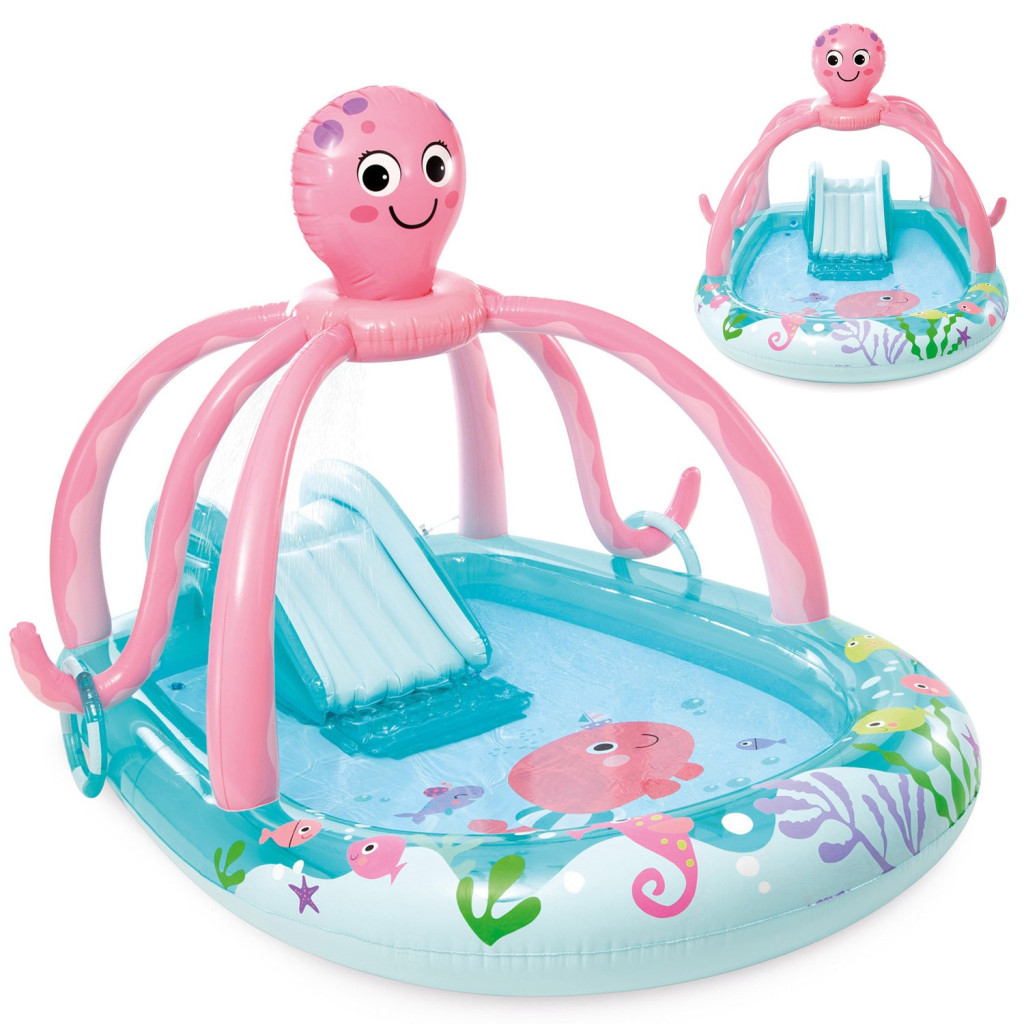 Fun center-barát polip 234 x 183 x 150 cm INTEX 56138 Az Intex barátságos polip felfújható játszóközpontja szórakoztató, amely lehetővé teszi, hogy gyermekei aktívan töltsék a szabadban nyaralni. A játszótér méretei: 234 x 183 x 150 cm - elég nagy ahhoz, hogy a szomszédok gyermekeit napfényes szórakozásra hívja. Nincs esély az unalomra. A játszótéren van pancsoló, csúszdák, két felfújható gyűrű és egy szökőkút. A sok vízi szórakozási lehetőség miatt a gyerekek már nem félnek a hosszú hőhullámoktól. A játszótér sok szórakozást nyújt gyermekeinek! Főbb jellemzők: felfújható csúszda puha leszállópad gyönyörű felfújható polip szökőkút két felfújható gyűrű javítófolt mellékelve Műszaki adatok: Méretek: 234 x 183 x 150 cm Anyaga: vinil Anyagvastagság: 0,28 kg Maximális megengedett súly: 54 kg Medence kapacitása: 229 liter Ajánlott életkor: 2 év+ Javító folt: mellékelve Súly: 4,74 kg