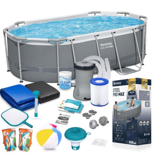 Keretes kerti medence 305 x 200 x 84 cm BESTWAY® 5614A HIT MEGA KÉSZLET Ha egy nagy, megbízható medencére van szüksége, amelyben szabadon úszhat - ez a tökéletes választás az Ön számára! Kész készlet teljes felszereléssel – nem kell minden elemet magának keresnie. Ha egy Bestway medencét vásárol speciális kiegészítőkkel, biztos lehet benne, hogy a legjobb minőséget kapja, és minden passzolni fog. Állítsa be a tartalmat Keretes medence 305 x 200 x 84 cm Szűrőszivattyú I-es típusú szivattyúszűrő Medence burkolat Medence szőnyeg Medence vegyszerek Vegyszer adagoló Háló a szennyeződések felfogására Medence hőmérő Felfújható labda Úszóujj Szivattyúszűrők Szivattyú bilincsek Szivattyútömlők Felhasználói kézikönyv Javítsa ki a javítást Letölthető útmutató az aukción VÁSÁROLJON EGY JOGOSULT KERESKEDELŐTŐL Nyersz: garanciális és jótállás utáni szerviz, hozzáférés a tartozékok legszélesebb választékához, szakosodott személyzet segítsége, a használattal kapcsolatos információk és bizonyított tanácsok, mindig új és kiváló minőségű termékek 15 év tapasztalat a piacon! Több mint 1 MILLIÓ elégedett ügyfél! A legmagasabb minőségi kidolgozás Tartós 3 rétegű PVC anyag Nylon hálós megerősítés a rétegek között Szúrásálló bevonat A belső tér fehér és kék mozaikot imitál Tiszta víz erőfeszítés nélkül A készlet mindent tartalmaz, ami a kristálytiszta vízhez kell: Szűrőszivattyú Továbbfejlesztett szivattyúszűrő 25 multitabletta – átfogó fertőtlenítő Medence vegyszer adagoló Medence hőmérő Háló a hulladék felfogására A medence 3 gyors lépésben készen áll: Bontsa ki a héjat, Szerelje össze a keretet - szerszám nélkül Öntsön vizet - kész! Most egy ilyen nagy medence kibontása eltart néhány pillanatig MŰSZAKI ADATOK Úszómedence A medence medence méretei 288 x 200 x 84 cm A medence külső méretei: 305 x 233 x 84 cm Súlya 31,1 kg Javasolt vízfeltöltés 90% Űrtartalma 3668 liter Szivattyú A szivattyú teljesítménye 1249 liter/óra Szivattyú tápellátása 220 - 240 V Antibakteriális pumpás I-es típusú szűrő (58093) A szivattyú súlya 2,1 kg ️️️ Legyen csodálatos élményekkel ez a nyár! ️️️