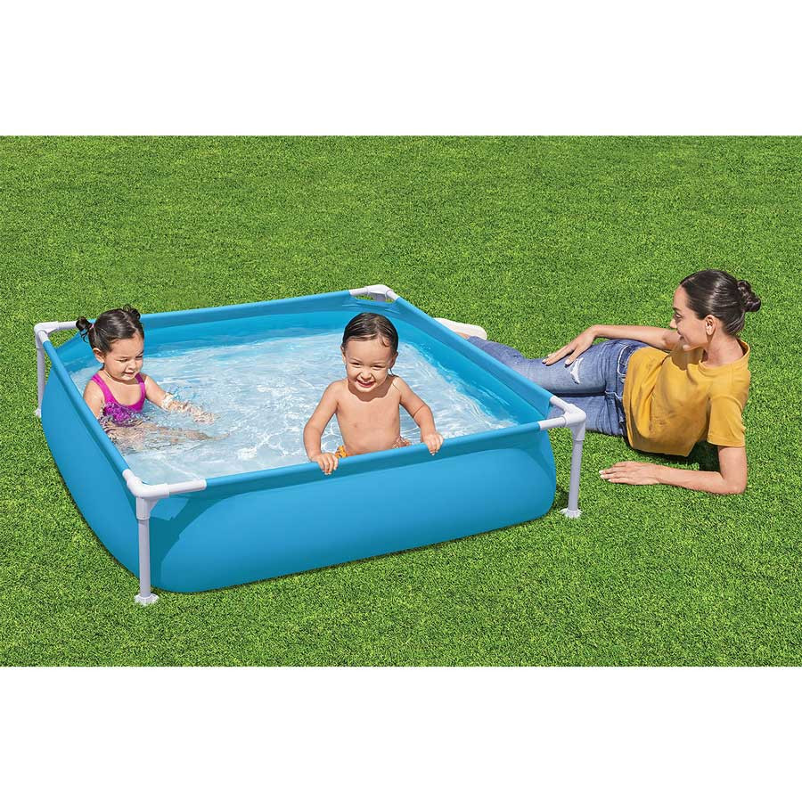 Téglalap alakú vázas medence gyermek számára, 122 x 30,5 cm Bestway 56217 Kisded szeret nyáron a vízben csobbanni? Bizonyára, mert melyik gyerek nem szereti! Add neki ezt a keretes kerti medencét a Bestway-től! A 122 × 30,5 cm méretű tartály akár 365 liter vizet is képes tárolni. A speciális méretek akár 90%-ig teszik lehetővé a feltöltést – ami több, mint a felfújható medencék esetében. A bemutatott medence erős PVC-ből készült, ellenáll a klórnak és a napfénynek. Figyelmeztetés: A termék kizárólag otthoni használatra és felnőtt felügyelete mellett használható. Műszaki adatok: Méretek: 122 × 30,5 cm Súly: 4,2 kg Javasolt víztöltés: 90% Űrtartalom: 365 liter Ajánlott életkor: 2 éves kortól A készlet tartalma: téglalap alakú vázas medence vízálló javítófolt