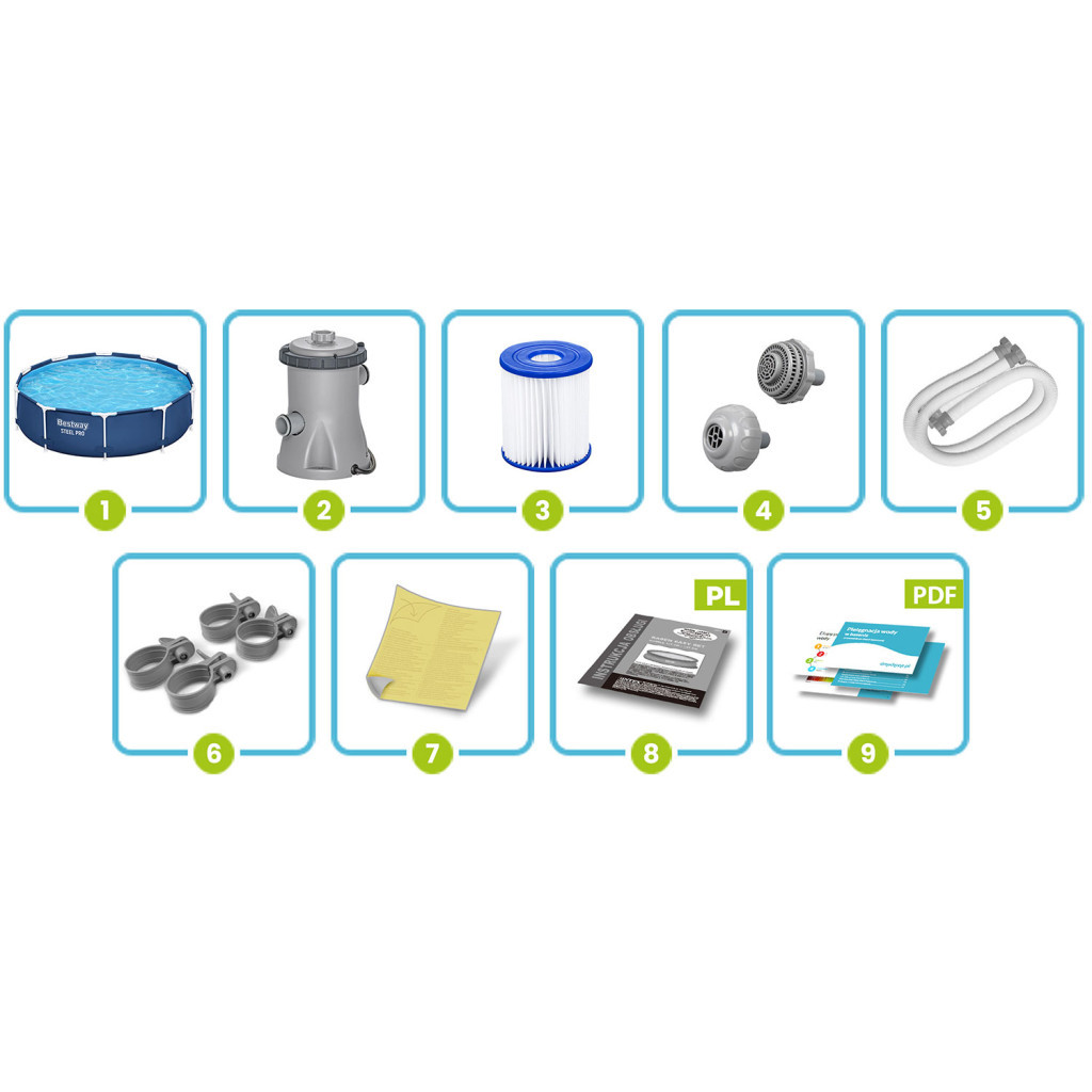 Keretes kerti medence 305 x 76 cm Bestway 56679 Élvezze a nyarat a saját medencéjében!!! Ha medencére van szüksége, hogy lehűljön a forró napokon – ez a tökéletes választás az Ön számára! Kész készlet felszereléssel – nem kell minden elemet magadnak keresned. Ha egy Bestway medencét vásárol speciális kiegészítőkkel, biztos lehet benne, hogy a legjobb minőséget kapja, és minden passzolni fog. A készlet tartalma: Keretes medence 305 x 76 cm Szűrőszivattyú Szivattyúszűrő típusa Szűrők Szivattyútömlők Felhasználói kézikönyv bilincsek Javítási folt Letölthető útmutató az aukción A legmagasabb minőségi kidolgozás Tartós 3 rétegű PVC anyag Nylon hálós megerősítés a rétegek között Szúrásálló bevonat Fehér és kék mozaikot imitáló belső tér A medence 3 gyors lépésben készen áll: Bontsa ki a héjat, Szerelje össze a keretet – nincs szükség szerszámra Felöntjük vízzel és kész! Most egy ilyen nagy medence felállítása csak néhány pillanatot vesz igénybe Műszaki adatok Úszómedence Medence méretei: 305 x 76 cm Medence súlya: 18,6 kg Javasolt vízfeltöltés 90% Űrtartalom: 4678 liter Medence száma: 56679 Szivattyú Teljesítmény: 1249 l/h Tápfeszültség: 220 - 240 V Szűrő típusa: I. típusú Szivattyúszám: 58381 ️️️ Legyen csodálatos élményekkel ez a nyár! ️️️