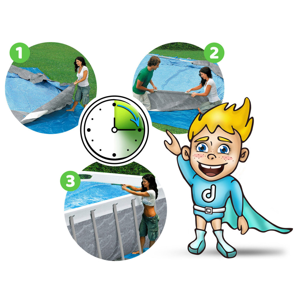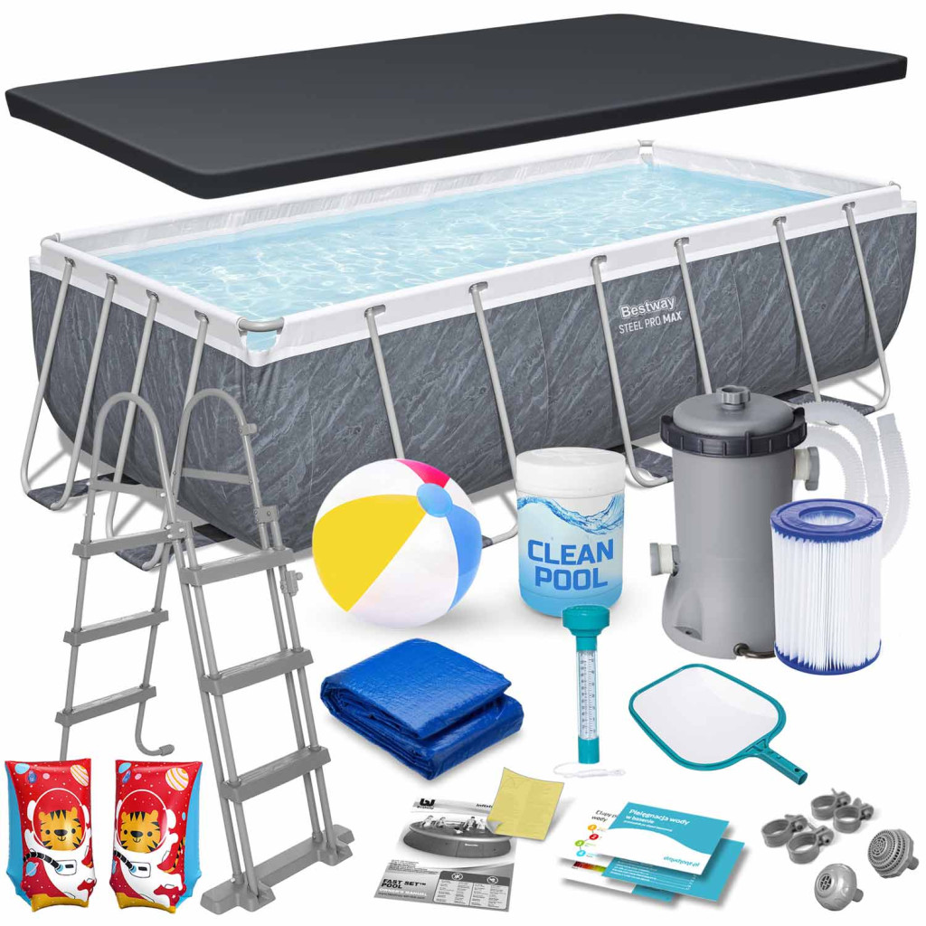 Keretes kerti medence szivattyúval 404 x 201 x 100 cm Bestway® cikkszám: 56721 HIT Ha egy nagy, megbízható medencére van szüksége, ahol szabadon úszhat - ez a tökéletes választás az Ön számára! Kész készlet komplett felszereléssel – nem kell minden elemet magának keresnie. Ha egy Bestway medencét vásárol speciális kiegészítőkkel, biztos lehet benne, hogy a legjobb minőséget kapja, és minden passzolni fog. A KÉSZLET TARTALMA Keretes medence 404 x 201x 100 cm. Szűrőszivattyú Szivattyúszűrő Kémia - Multitabletta 25x20g Úszó karszalagok Biztonságos létra Medence burkolat Medence szőnyeg Strandlabda Háló a szennyeződések felfogására Medence hőmérő Szivattyúszűrők Szivattyú bilincsek Szivattyútömlők Javítási folt Lengyel nyelvű utasítások Útmutató – letölthető az aukción Gyermekbiztonság A leszerelhető lépcsők megakadályozzák, hogy felügyelet nélkül hagyott gyerekek lépjenek be Magassága tökéletesen illeszkedik a medence méretéhez Korrózióálló, megerősített fémkeret Csúszásgátló lépcsők Kényelmes kapaszkodók A legmagasabb minőségi kidolgozás Tartós 3 rétegű PVC anyag Nylon hálós megerősítés a rétegek között Szúrásálló bevonat Fehér és kék mozaikot imitáló belső tér Borító Megvédi a medence vizét a szennyeződésektől Megakadályozza, hogy gyermekek az Ön engedélye nélkül belépjenek a medencébe Lassítja a víz hőveszteségét Mat Megvédi az alját a sérülésektől Védelmet nyújt az ellen, hogy homok és egyéb szennyeződés kerüljön a medencébe Elszigeteli a medencét a talajtól Tiszta víz erőfeszítés nélkül A készlet mindent tartalmaz, ami a kristálytiszta vízhez kell: Szűrőszivattyú Továbbfejlesztett szivattyúszűrő 25 több tabletta – átfogó fertőtlenítő Medence vegyszer adagoló Háló a szennyeződések felfogására Medence hőmérő A medence 3 gyors lépésben készen áll: Bontsa ki a héjat, Szerelje össze a keretet - szerszámok használata nélkül Öntsön vizet – kész! Most egy ilyen nagy medence felállítása csak néhány pillanatot vesz igénybe A medence az egész család számára szórakoztató Gyermekeit szem előtt tartva a gyerekek kedvenc kiegészítőit adjuk hozzá: Úszó karszalagok a biztonságosabb szórakozásért Egy színes labda közös játékra ösztönzi a gyerekeket és a felnőtteket MŰSZAKI ADATOK Úszómedence A medence medence méretei 404 x 201 x 100 cm A medence külső méretei: 441 x 241 x 100 cm Súlya 64,11 kg Javasolt vízfeltöltés 90% Űrtartalma 6478 liter Szivattyú A szivattyú teljesítménye 2006 liter/óra Szivattyú tápellátása 220 - 240 V Szivattyúszűrő II ️️️ Legyen csodálatos élményekkel ez a nyár! ️️️ Figyelmeztetés: Az úszókarszalag nem játék, nem életmentő felszerelés, és nem véd a fulladás ellen. Felnőtt felügyelete mellett olyan mélységű vízben használható, ahol a gyermek a lába alatt érzi a fenekét. A megfelelő felfújás és a felszerelés használata elengedhetetlen a biztonság érdekében, ne fújja túl. Győződjön meg arról, hogy a biztonsági szelep szorosan zárva van, és a varratok nincsenek repedve. Súlytartomány 18-30 kg, életkor 3-6 év. A fotókon látható strand kiegészítők (labdák, gyűrűk) nem tartoznak a szetthez. Az aukció minden eleme szerzői jogvédelem alatt áll, másolásukhoz nem járulunk hozzá.