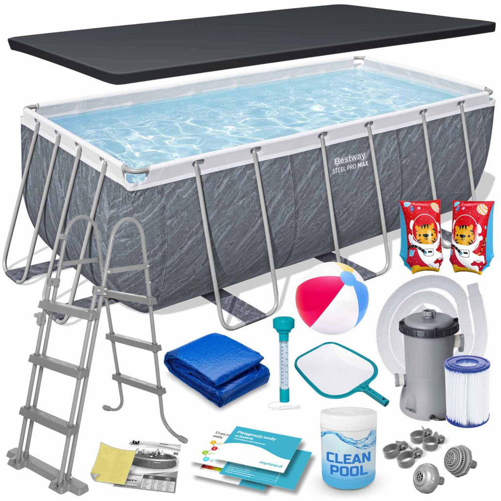 NAGY CSALÁDI MEDENCE 412x201x122 cm TELJES KÉSZLET BESTWAY® katalógusszám: 56722 A tökéletes medence az egész család számára Kész készlet komplett felszereléssel – nem kell minden elemet magadnak keresned. A medence dizájnos megjelenése minden kertben felejthetetlen hangulatot varázsol Ha a bemutatott medencét a Bestway® hivatalos képviselőjétől vásárolja meg, biztos lehet benne, hogy a termék új, eredeti és biztonságos. A KÉSZLET TARTALMA Keretes medence 412x 201 x 122 cm. Szűrőszivattyú II típusú szivattyúszűrő Kémia - Multitabletta 25x20g Medence vegyszer adagoló Biztonságos létra Medence burkolat Medence szőnyeg Strandlabda Úszásoktató karszalagok Háló a szennyeződések felfogására Medence hőmérő Szivattyúszűrők Szivattyú bilincsek Szivattyútömlők Javítási folt Lengyel nyelvű utasítások Útmutató – letölthető az aukción Először is: gyermekbiztonság A leszerelhető lépcsők megakadályozzák, hogy felügyelet nélkül hagyott gyerekek lépjenek be Magassága tökéletesen illeszkedik a medence méretéhez Korrózióálló, megerősített fémkeret Csúszásgátló lépcsők Kényelmes kapaszkodók Másodszor: a legmagasabb minőségi kidolgozás Tartós 3 rétegű PVC anyag Nylon hálós megerősítés a rétegek között Szúrásálló bevonat Harmadszor: Tiszta víz erőfeszítés nélkül A készlet mindent tartalmaz, ami a kristálytiszta vízhez kell: Szűrőszivattyú Továbbfejlesztett szivattyúszűrő 25 több tabletta – átfogó fertőtlenítő Medence vegyszer adagoló Háló a szennyeződések felfogására Medence hőmérő Borító Megvédi a medence vizét a szennyeződésektől Megakadályozza, hogy gyermekek az Ön engedélye nélkül belépjenek a medencébe Lassítja a víz hőveszteségét Mat Megvédi az alját a sérülésektől Védelmet nyújt az ellen, hogy homok és egyéb szennyeződés kerüljön a medencébe Elszigeteli a medencét a talajtól A medence az egész család számára szórakoztató Gyermekeire gondolva hozzáadjuk kedvenc kiegészítőiket: Úszó karszalagok Színes labda MŰSZAKI ADATOK Úszómedence A medence medence méretei 412 x 201 x 122 cm A medence külső méretei: 462 x 254 x 122 cm Medence súlya 75,9 kg Javasolt vízfeltöltés 90% Űrtartalom 8124 liter Szivattyú Kapacitása 2006 liter/óra Tápellátás 220 - 240 V Szivattyúszűrő Type II (58094) A szivattyú súlya 2 kg ️️️ Legyen csodálatos élményekkel ez a nyár! ️️️ Figyelmeztetés: Az úszókarszalag nem játék, nem életmentő felszerelés, és nem véd a fulladás ellen. Felnőtt felügyelete mellett olyan mélységű vízben használható, ahol a gyermek a lába alatt érzi a fenekét. A megfelelő felfújás és a felszerelés használata elengedhetetlen a biztonság érdekében, ne fújja túl. Győződjön meg arról, hogy a biztonsági szelep szorosan zárva van, és a varratok nincsenek repedve. Súlytartomány 18-30 kg, életkor 3-6 év.