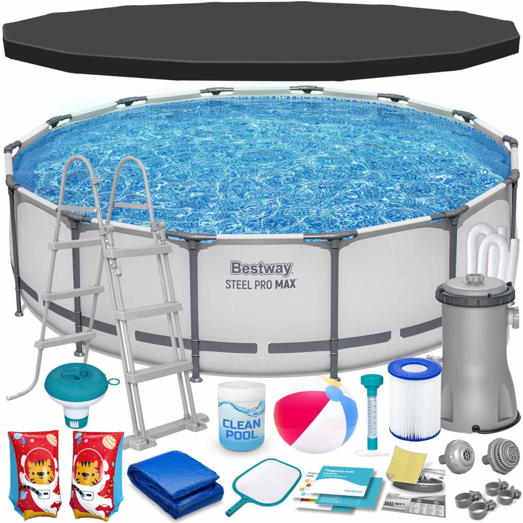 Keretes kerti medence 427 x 107 cm MEGA SZETT BESTWAY ® katalógusszám: 56950-17W1 Tökéletes medence kertjébe Ha egy nagy, megbízható medencére van szüksége, amelyben szabadon úszhat - ez a tökéletes választás az Ön számára! Kész készlet teljes felszereléssel – nem kell minden elemet magának keresnie. Ha egy Bestway medencét vásárol speciális kiegészítőkkel, biztos lehet benne, hogy a legjobb minőséget kapja, és minden passzolni fog. Állítsa be a tartalmat Keret medence 427 x 107 cm Szűrőszivattyú Szivattyúszűrő Létra Kémia - Multitabletta 25x20g Vegyszer adagoló Medence hőmérő Medence burkolat Medence szőnyeg Háló a szennyeződések felfogására Labda Úszóujj Szivattyúszűrők Szivattyú bilincsek Szivattyútömlők Javítsa ki a javítást Lengyel nyelvű utasítások Útmutató – letölthető az aukción Gyermekbiztonság A leszerelhető lépcsők megakadályozzák, hogy felügyelet nélkül hagyott gyerekek lépjenek be A magassága tökéletesen illeszkedik a medence méretéhez Korrózióálló, megerősített fémkeret Csúszásgátló lépcsők Kényelmes kapaszkodók A legmagasabb minőségi kidolgozás Tartós 3 rétegű PVC anyag Nylon hálós megerősítés a rétegek között Szúrásálló bevonat Borító Megvédi a medence vizét a szennyeződésektől Megakadályozza, hogy gyermekek az Ön engedélye nélkül belépjenek a medencébe Lassítja a víz hőveszteségét Mat Védi az alját a sérülésektől Védelmet nyújt az ellen, hogy homok és egyéb szennyeződés kerüljön a medencébe Elszigeteli a medencét a talajtól Tiszta víz erőfeszítés nélkül Mindent tartalmaz, ami a kristálytiszta vízhez kell: Szűrőszivattyú Továbbfejlesztett szivattyúszűrő 25 multitabletta – átfogó fertőtlenítő Medence vegyszer adagoló Medence hőmérő Háló a hulladék felfogására A medence 3 gyors lépésben készen áll: Bontsa ki a héjat, Szerelje össze a keretet - szerszám nélkül Öntsön vizet - kész! Most egy ilyen nagy medence kibontása eltart néhány pillanatig MŰSZAKI ADATOK Úszómedence A medence méretei 427 x 107 cm Súlya 52,7 kg Javasolt vízfeltöltés 90% Űrtartalom 13 030 liter Szivattyú A szivattyú teljesítménye 3028 liter/óra Szivattyú tápellátása 220 - 240 V II-es típusú szivattyúszűrő (58094) ️️️ Legyen csodálatos élményekkel ez a nyár! ️️️ Figyelmeztetések: Az úszókar ujja nem játék, nem mentőeszköz, és nem véd a fulladás ellen. Olyan mélységű vízben használható, ahol a gyermek a lába alatt érzi a fenekét, felnőtt felügyelete mellett. A megfelelő felfújás és a felszerelés használata elengedhetetlen a biztonság érdekében, ne fújja túl. Ellenőrizze, hogy a biztonsági szelep szorosan zárva van-e, és a varratok nincsenek-e repedve. Súlytartomány 18-30 kg, életkor 3-6 év.