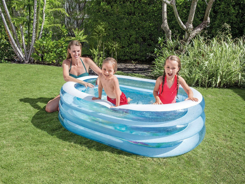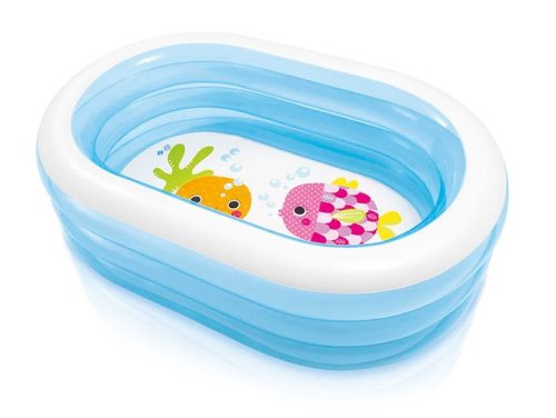 Felfújható medence, ovális 163 x 107 x 46 cm INTEX 57482 Tétel leírása: Az ovális, felfújható Intex kerti medence a nyári szórakozás legfiatalabb kedvelőinek készült. A medence magas, felfújható falai három átlátszó gyűrűből állnak. A sokszínű fenék, meseszerű motívumokkal és nagy, 230 literes űrtartalommal remek alkalom arra, hogy otthoni kertedben szórakozz! Figyelmeztetés: A termék kizárólag otthoni használatra és felnőtt felügyelete mellett használható. Főbb jellemzők: gyönyörű grafika átlátszó, puha falak 3 felfújható gyűrű vízleeresztő szelep javítófolt mellékelve Műszaki adatok: Méretek: 163 x 107 x 46 cm Anyaga: PVC Súly: 2,70 kg PVC vastagság: 0,30 mm Medence kapacitása: 230 liter Vízszint magasság: 28 cm Ajánlott életkor: 3 éves kortól