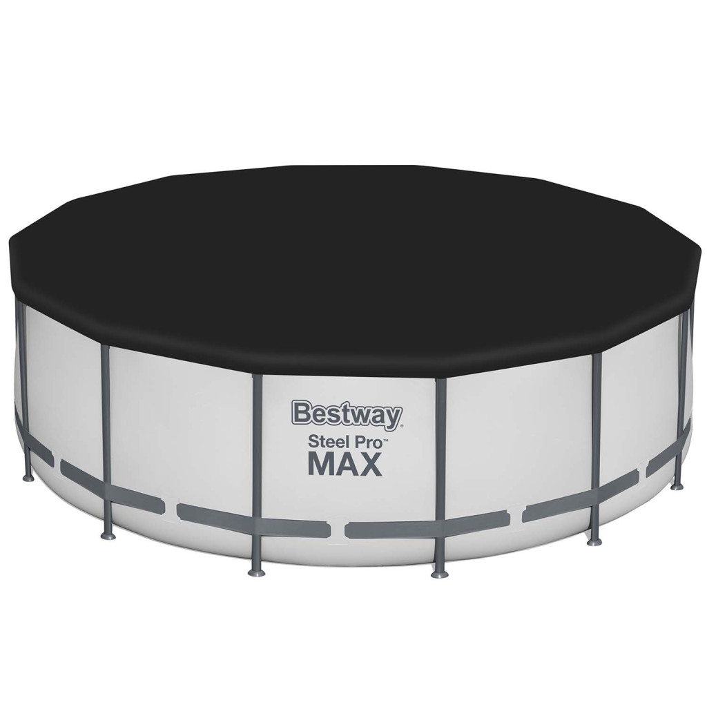 A Bestway 396 cm átmérőjű medencetakaróval gondoskodik szerettei biztonságáról és medencéje vizének tisztaságáról. A burkolat törésének megakadályozására pl. eső nyomása alatt praktikus lyukakkal van ellátva, amelyek feladata a víz elvezetése a felületéről. A termék kötélvédelemmel is rendelkezik, és a Bestway 396 cm-es keretes medencéihez készült.