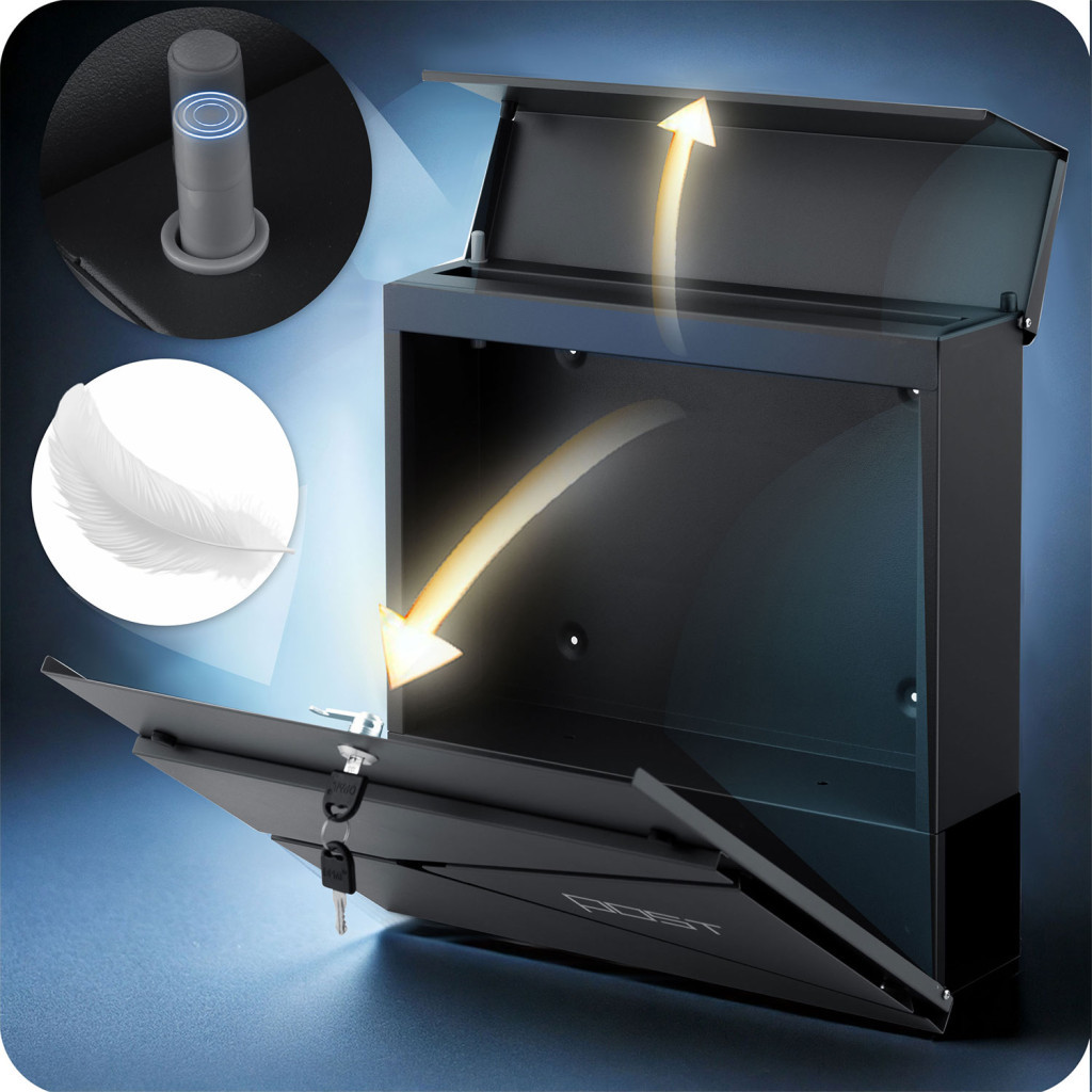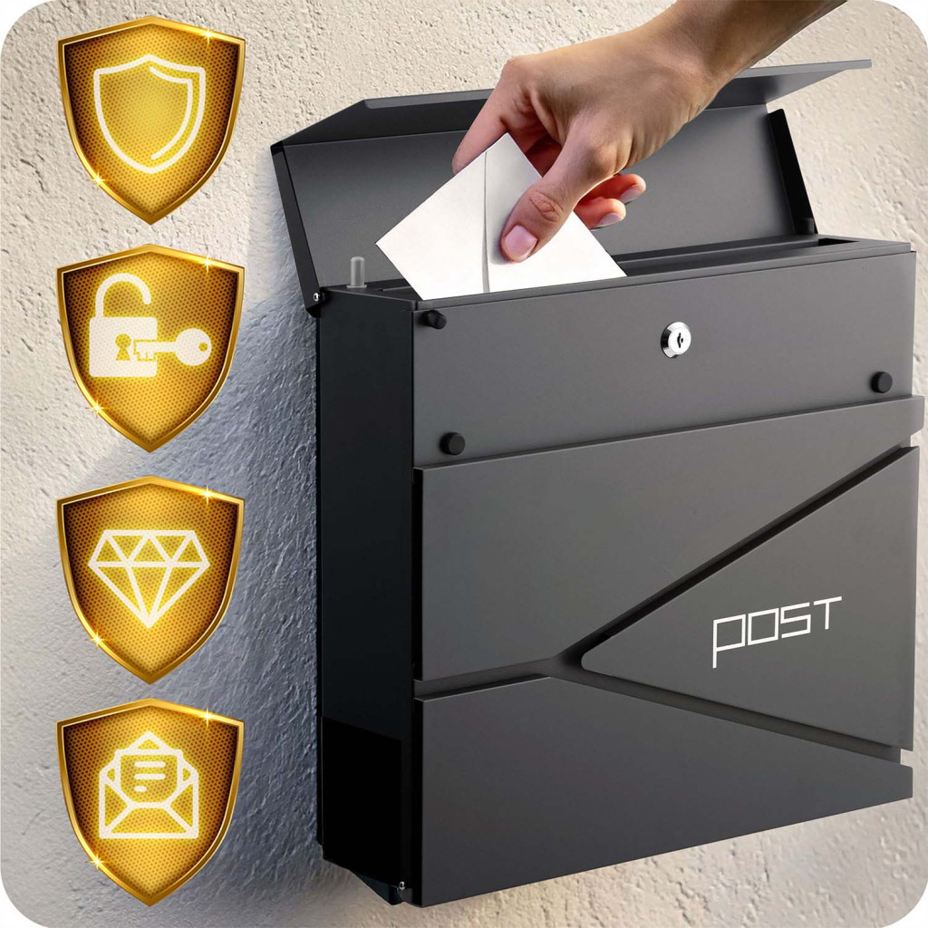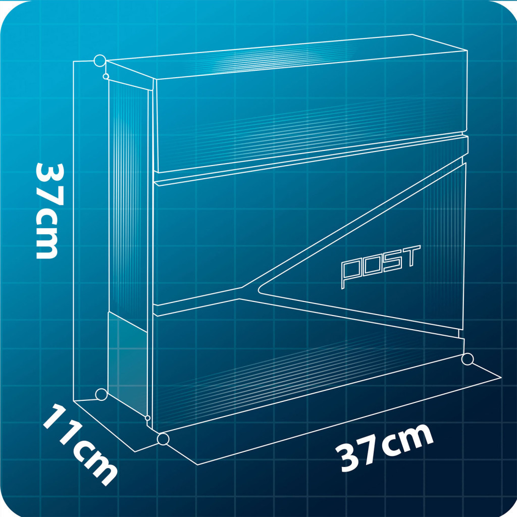 Korrózióálló horganyzott acélból és elegáns antracit színű porszórt bevonattal készült, így nem csak levelezését védi, hanem tökéletesen illeszkedik a modern homlokzathoz.