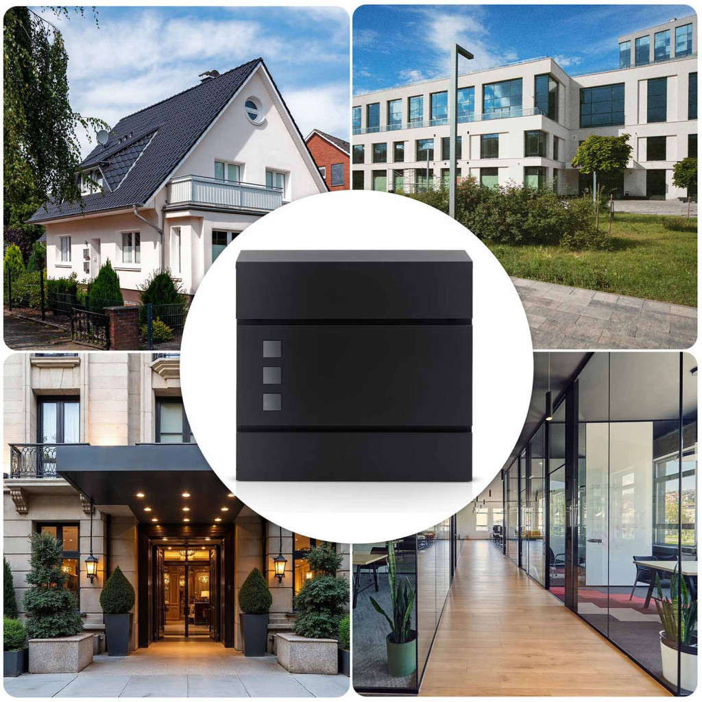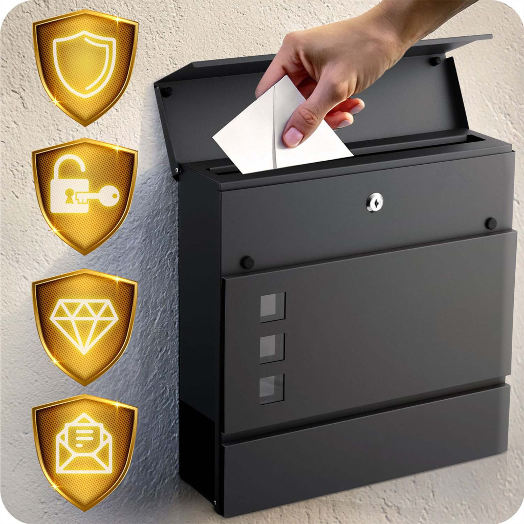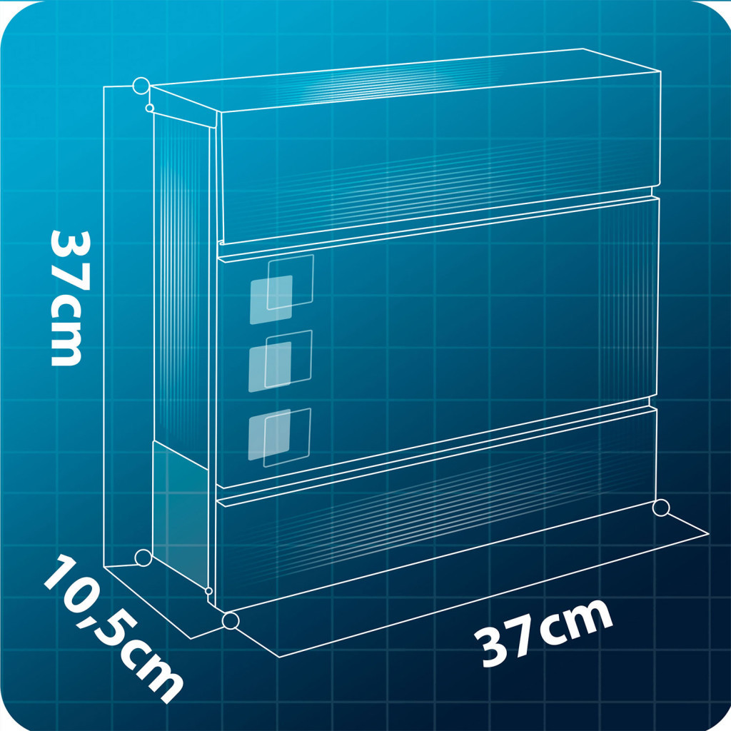 Korrózióálló horganyzott acélból és elegáns antracit színű porszórt bevonattal készült, így nem csak levelezését védi, hanem tökéletesen illeszkedik a modern homlokzathoz.