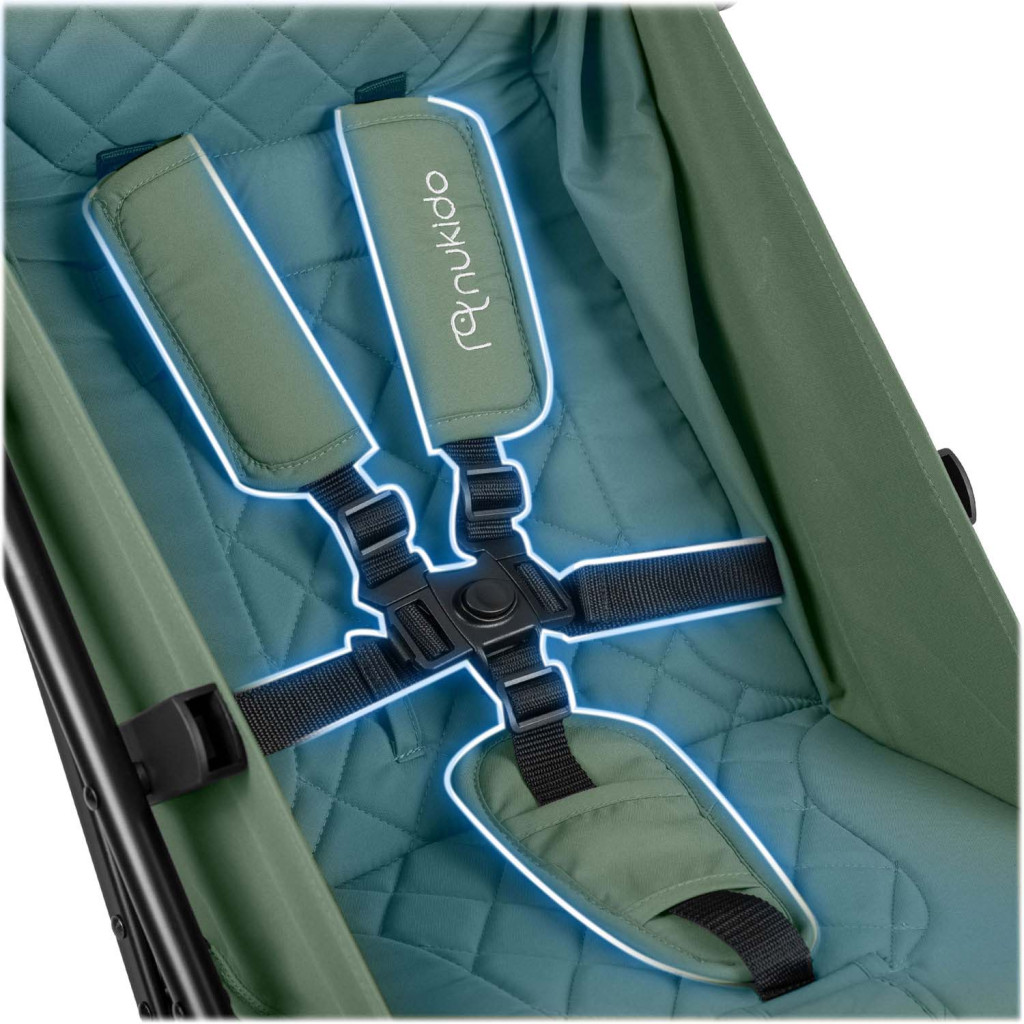 ✔ Ötpontos biztonsági övek párnákkal. Ez a biztonsági övrendszer biztosítja a gyermek optimális rögzítését a babakocsiban.