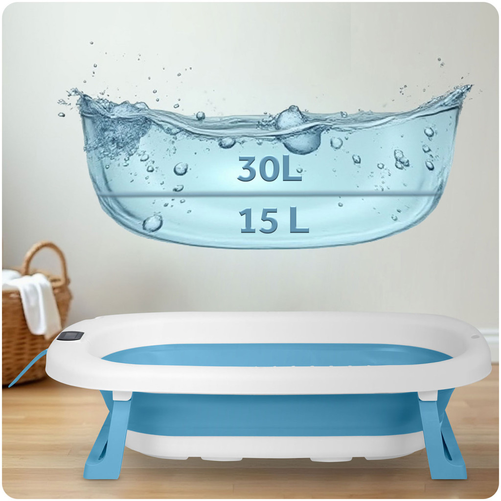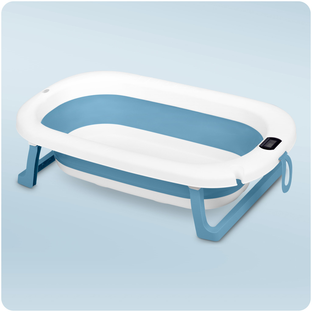 Összecsukható fürdőkád gyerekeknek, csecsemőknek hőmérővel és betéttel RK-287 fehér és kék