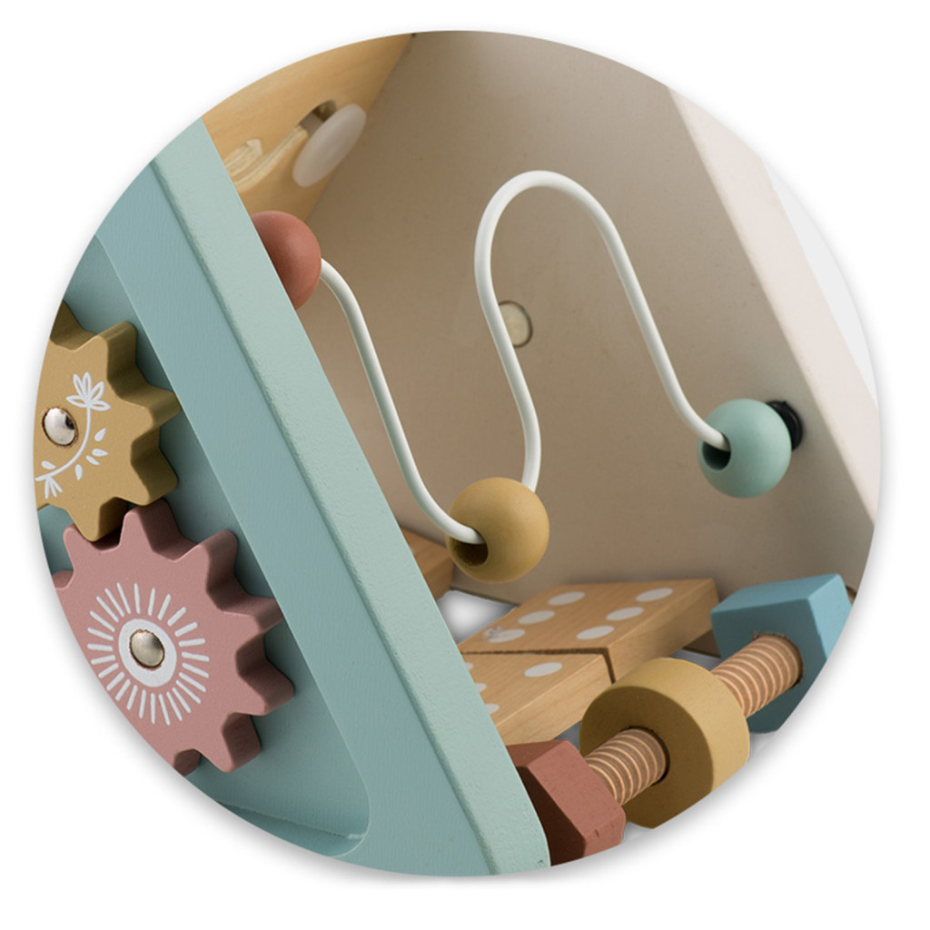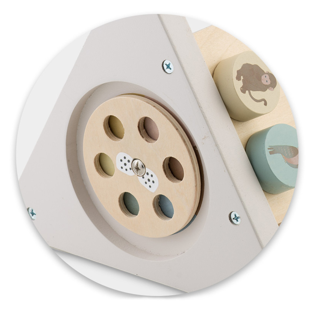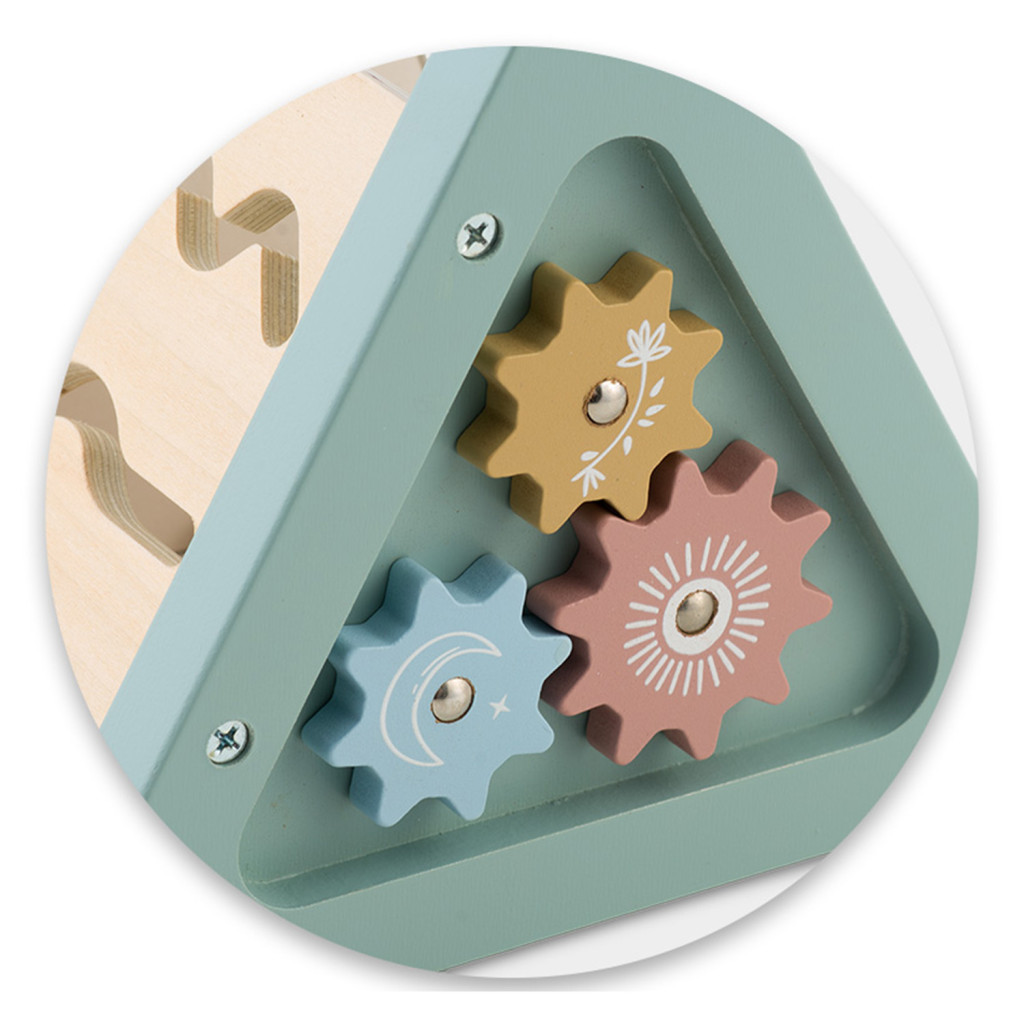 FA háromszög érzékelő játék Nukido: NK-860 Főbb jellemzők: szilárd és tartós, biztonságos és természetes anyagokból készült, sok lehetőség a játékra és a tanulásra, kiváló minőségű anyagból készült - hosszabb élettartam, támogatja a tanulást: számolás, formák és színek, a játék sokáig érdekelni fogja a gyermeket, támogatja a finom motoros készségek fejlődését, tartós és ellenálló, EN71 tanúsítvánnyal rendelkezik, amely bizonyítja a biztonságot. Sok lehetőség mindegyik változat külön tanulási és szórakoztató elemként használható, számos gomb és mozgatható panel, sok elemet kell módosítani, mozgatni és megtanulni mozogni, a háromszög minden síkján a gyermek tanul valami újat. ⭐⭐⭐⭐⭐ Természetes fából készült játékok a Nukido-tól: Tartósság és prémium minőség – A természetes fából készült játékok tartósak és ellenállnak a sérüléseknek, ami azt jelenti, hogy évekig használhatók. Masszív felépítésük biztosítja a biztonságot és a megbízhatóságot, ami a szülők és a gyermekek elégedettségét jelenti. Elegancia és minimalizmus – Az élénk, visszafogott színű játékok tökéletesen illeszkednek a modern, minimalista belső terekbe. A finom színek és a forma egyszerűsége segíti a gyermek fejlődését elősegítő esztétikus és nyugodt környezet kialakítását. 1. Forgó fogaskerekek szórakozásból Ösztönzi a kis kezek finommotorikus készségeinek fejlesztését, és számos formát, textúrát és színt biztosít a megfogás, a tartás és a felfedezés érdekében. 2. Oldallap forgó csúszóelemekkel. Különféle forgó elemek és utak rögzítik, hogy a gyermek mozgassa a formákat. Ez gyakorolja a kézi készségeket, a koncentrációt és a mozgások tervezését. 3. Menetes golyók Sok szórakozási lehetőség, remek kidolgozás, csúcsminőség jó áron! 4. Panelek állatok képeivel A játék oldalfalait mozgatható, állatillusztrációkkal ellátott tömbök díszítik, melyek kiindulópontként szolgálhatnak az állatnevek elsajátításához, a szókincs fejlesztéséhez és a képzelet serkentéséhez. 5. Állítható csavaros mechanizmus A gyermek el tudja forgatni a csavart, ami fejleszti a mechanika megértését és befolyásolja a mozdulatok pontosságának fejlődését. 6. Gombok Ezek az elemek lehetővé teszik, hogy a játék különböző részeit forgatással vagy csúsztatással manipuláld, ami segít fejleszteni a koordinációt és a problémamegoldó készségeket. Gondosan kidolgozott részletek, ergonomikusan a gyerekek kezéhez igazítva! Remek szórakozás *a játékhoz nincs szükség elemre, és nem játszik le dallamokat. A kockában sok mozgatható elem, különféle fogaskerekek, csúszó gyöngyök, labdák számára kialakított sín, gombok, állatokkal ellátott blokkok és csavaros forgó faszálak találhatók. Kiváló a finommotorika fejlesztésére! Termékünk színes csomagolásának köszönhetően ajándéknak is kiváló.