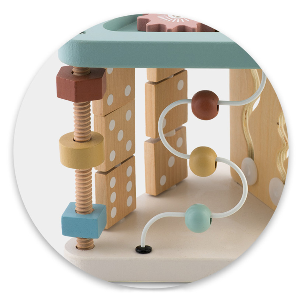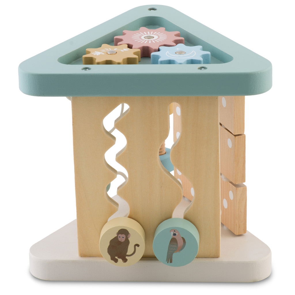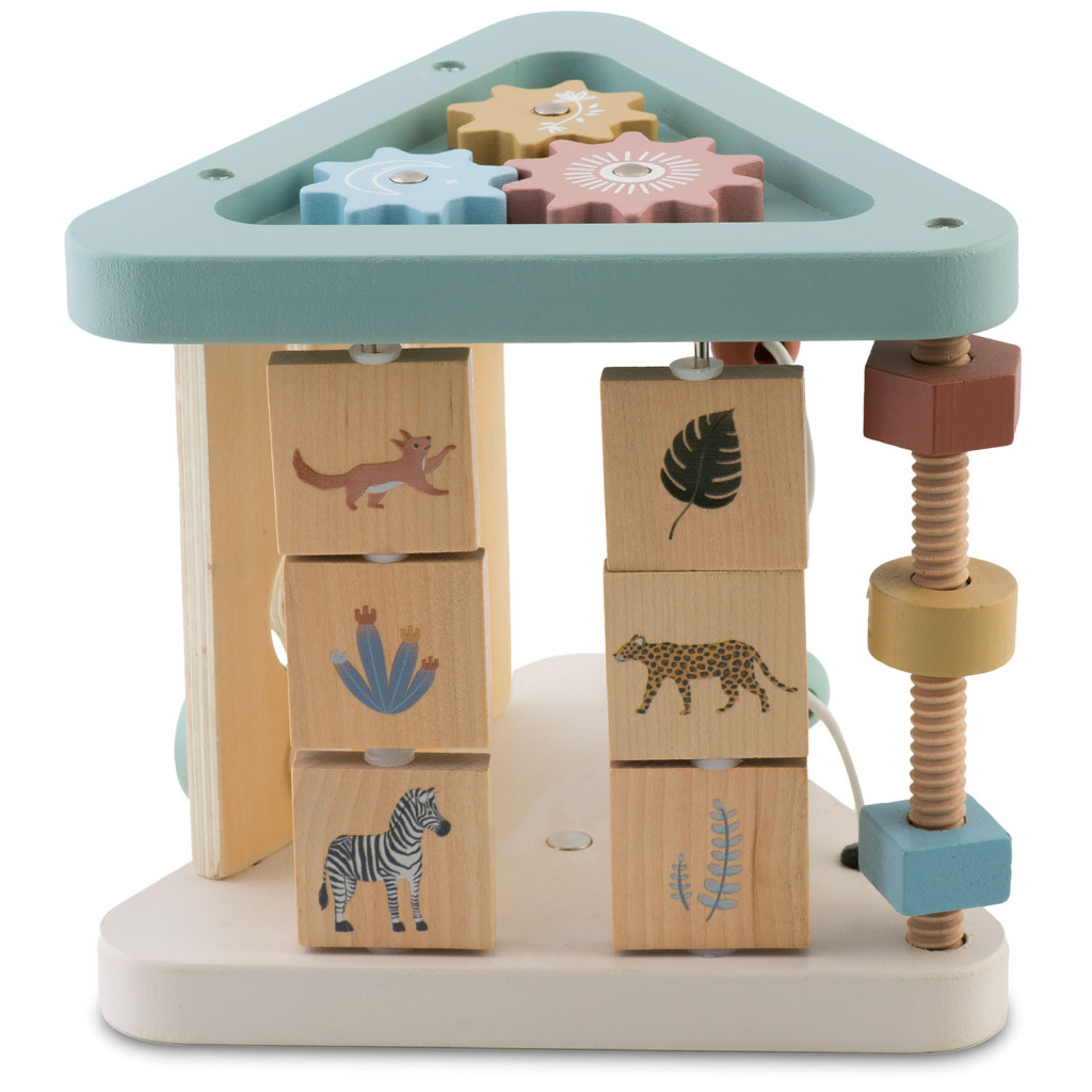 FA háromszög érzékelő játék Nukido: NK-860 Főbb jellemzők: szilárd és tartós, biztonságos és természetes anyagokból készült, sok lehetőség a játékra és a tanulásra, kiváló minőségű anyagból készült - hosszabb élettartam, támogatja a tanulást: számolás, formák és színek, a játék sokáig érdekelni fogja a gyermeket, támogatja a finom motoros készségek fejlődését, tartós és ellenálló, EN71 tanúsítvánnyal rendelkezik, amely bizonyítja a biztonságot. Sok lehetőség mindegyik változat külön tanulási és szórakoztató elemként használható, számos gomb és mozgatható panel, sok elemet kell módosítani, mozgatni és megtanulni mozogni, a háromszög minden síkján a gyermek tanul valami újat. ⭐⭐⭐⭐⭐ Természetes fából készült játékok a Nukido-tól: Tartósság és prémium minőség – A természetes fából készült játékok tartósak és ellenállnak a sérüléseknek, ami azt jelenti, hogy évekig használhatók. Masszív felépítésük biztosítja a biztonságot és a megbízhatóságot, ami a szülők és a gyermekek elégedettségét jelenti. Elegancia és minimalizmus – Az élénk, visszafogott színű játékok tökéletesen illeszkednek a modern, minimalista belső terekbe. A finom színek és a forma egyszerűsége segíti a gyermek fejlődését elősegítő esztétikus és nyugodt környezet kialakítását. 1. Forgó fogaskerekek szórakozásból Ösztönzi a kis kezek finommotorikus készségeinek fejlesztését, és számos formát, textúrát és színt biztosít a megfogás, a tartás és a felfedezés érdekében. 2. Oldallap forgó csúszóelemekkel. Különféle forgó elemek és utak rögzítik, hogy a gyermek mozgassa a formákat. Ez gyakorolja a kézi készségeket, a koncentrációt és a mozgások tervezését. 3. Menetes golyók Sok szórakozási lehetőség, remek kidolgozás, csúcsminőség jó áron! 4. Panelek állatok képeivel A játék oldalfalait mozgatható, állatillusztrációkkal ellátott tömbök díszítik, melyek kiindulópontként szolgálhatnak az állatnevek elsajátításához, a szókincs fejlesztéséhez és a képzelet serkentéséhez. 5. Állítható csavaros mechanizmus A gyermek el tudja forgatni a csavart, ami fejleszti a mechanika megértését és befolyásolja a mozdulatok pontosságának fejlődését. 6. Gombok Ezek az elemek lehetővé teszik, hogy a játék különböző részeit forgatással vagy csúsztatással manipuláld, ami segít fejleszteni a koordinációt és a problémamegoldó készségeket. Gondosan kidolgozott részletek, ergonomikusan a gyerekek kezéhez igazítva! Remek szórakozás *a játékhoz nincs szükség elemre, és nem játszik le dallamokat. A kockában sok mozgatható elem, különféle fogaskerekek, csúszó gyöngyök, labdák számára kialakított sín, gombok, állatokkal ellátott blokkok és csavaros forgó faszálak találhatók. Kiváló a finommotorika fejlesztésére! Termékünk színes csomagolásának köszönhetően ajándéknak is kiváló.