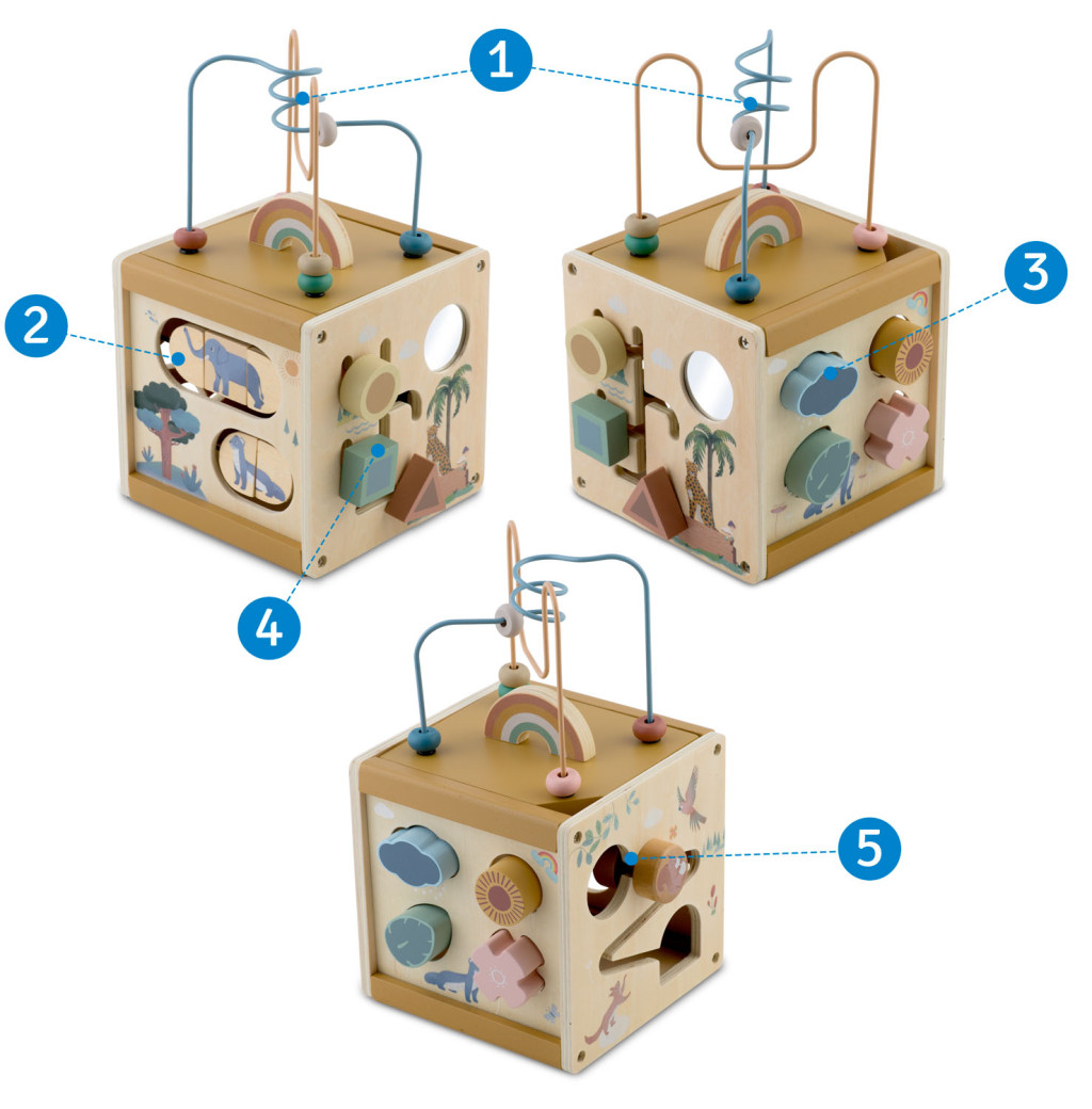 FA Cube érzékszervi játék Nukido: NK-861 ⭐ Finommotorika fejlesztése: A labdapályás szenzoros kocka játékra és felfedezésre ösztönöz, fejleszti gyermeke finommotorikus készségeit. ⭐ Érzékszervi stimuláció: A színes és változatos állatformák serkentik a látást és a tapintást. Ezeknek az elemeknek a felfedezése örömmel és fejlődéssel teli időt biztosít kicsinek. ⭐ Montessori inspiráció: A Montessori-elvekből merítve játékunk támogatja az aktív, érzékszervi alapú tanulást. Sok lehetőség: mindegyik változat külön tanulási és szórakoztató elemként használható, támogatja a tanulást: számolás, formák és színek, a játék sokáig érdekelni fogja a gyermeket, támogatja a finom motoros készségek fejlődését, labdapályás csúszdával rendelkezik, kiválóan működik válogatóként, számos válogató blokk, a kocka minden síkján a gyerek tanul valami újat. ⭐⭐⭐⭐⭐ Természetes fából készült játékok a Nukido-tól: Tartósság és prémium minőség – A természetes fából készült játékok tartósak és ellenállnak a sérüléseknek, ami azt jelenti, hogy évekig használhatók. Masszív felépítésük biztosítja a biztonságot és a megbízhatóságot, ami a szülők és a gyermekek elégedettségét jelenti. Elegancia és minimalizmus – Az élénk, visszafogott színű játékok tökéletesen illeszkednek a modern, minimalista belső terekbe. A finom színek és a forma egyszerűsége segíti a gyermek fejlődését elősegítő esztétikus és nyugodt környezet kialakítását. Gondosan kidolgozott részletek, ergonomikusan a gyerekek kezéhez igazítva! Végtelen szórakozás – rengeteg lehetőség: Ball track - pályák gyöngyökhöz. A legjobb módja az összetett mozgásminták megtanulásának. Forgó puzzle állatokkal. Blocks - forma illesztő játék Labirintus mozgáspályái. Mozgáspálya kivehető blokkal, mókusfestéssel. Rejtsd el a kiálló golyókat a játék belsejében, és könnyedén magaddal viheted utazásra Ebben a játékban a kiálló golyók elrejthetők a kocka belsejében, ami megkönnyíti a tárolást és a szállítást. Biztonságos, esztétikus és egyszerű helykezelést tesz lehetővé. A tárolórekesz az alkatrészeket is védi, így a játék tökéletes utazáshoz. Termékünk színes csomagolásának köszönhetően ajándéknak is kiváló.