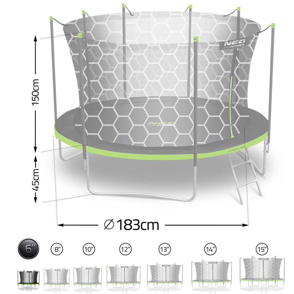 Trambulin belső hálóval és  létrával , 6 láb/183 cm-es - Neo-Sport