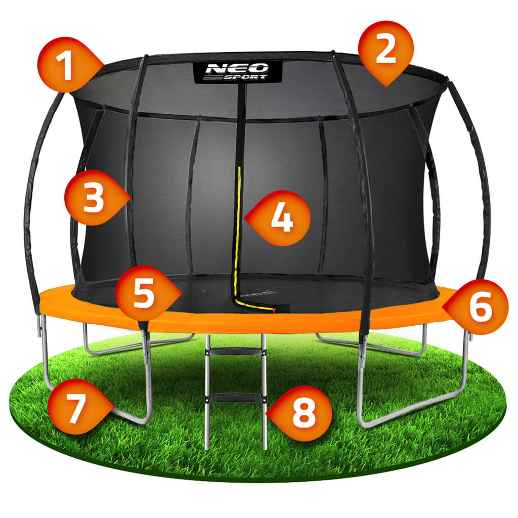 Trambulin belső hálóval és létrával 374 cm Neo-Sport (NS-12C201)