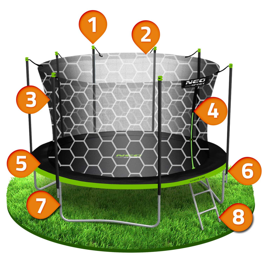 Trambulin belső hálóval és létrával , 12láb / 374cm - Neo-Sport (NS-12W231)