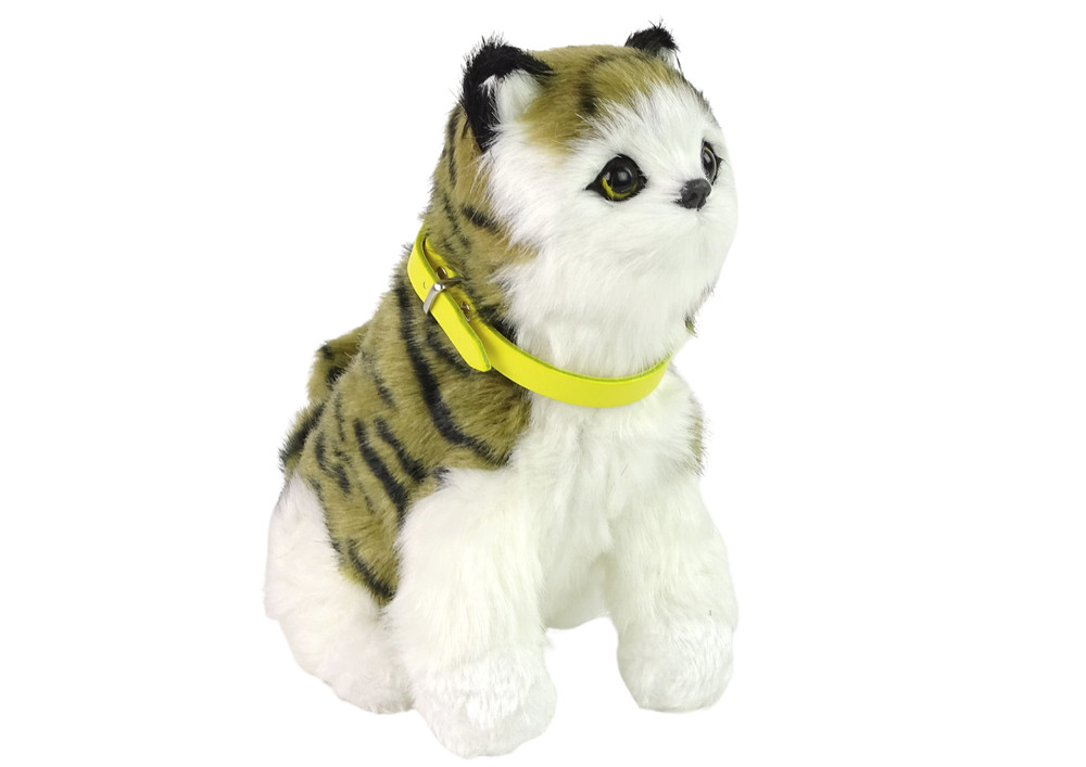 Interaktív plüss cica puha szőrrel Simogasd meg a fejét és ismerd meg a funkcióit! Ha gyermeked arról álmodik, hogy saját kiscicája lesz – gondoskodhat róla, simogathatja, ölelgetheti az állatot, és szeretne egy saját barátot, akkor az interaktív cica nagyszerű játszótárs! Segítünk valóra váltani ezt az álmot. Amikor simogatod a fejét, aktiválódik: nyávogni kezd, mozgatja a fejét és a farkát. Minden érintésre a cica reagál. A kicsi úgy fogja érezni magát, mintha egy igazi háziállata lenne. A játék nemcsak mosolyt csal az arcára, hanem szórakoztatóvá is teszi a szabadidejét. Ez lesz a kezdete annak, hogy saját háziállata legyen, és a játékon és a lelkiismeretes házimunkán keresztül megtanulja a felelősséget az állat iránt. Ez a jövőben megtérül. És ki tudja, talán az, ahogyan a kisgyerek gondoskodik a kiscicáról, egy igazi cicát szerez neki. A cica fehér és barna, fekete csíkos bundája rendkívül puha és kellemes tapintású. A szem színe sötét, sárga szegéllyel. A nyakában lévő levehető sárga nyakörv fokozza a báját. A macska méretei: 19 cm x 17 cm x 13 cm A játék cica átlátszó fóliába van csomagolva. 3 éves kortól minden gyermek számára alkalmas. A kutya CE tanúsítvánnyal rendelkezik, amely igazolja, hogy megfelel az Európai Unió irányelveinek követelményeinek. Megfelel az EN71 szabványnak. Nagyon biztonságos játék, nincsenek éles részei és kellemes tapintású. A macskával való játékhoz 3 db 1,5 V-os "AA" elemre van szükség. Az elemnyílás a szőr alatt található.