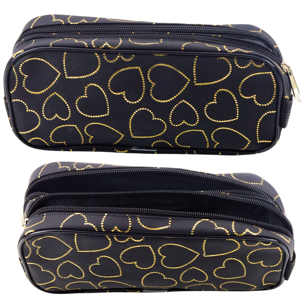 Iskolai irodai tolltartó, kétrekeszes, aranyszívek, fekete, 23,5x10 cm