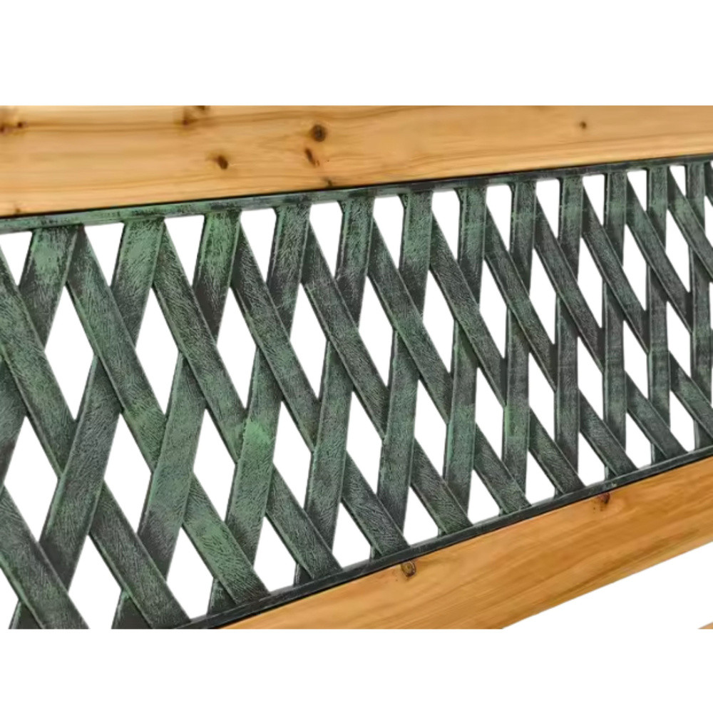 FA ÉS FÉM KERTI PAD HÁTTÁMLÁVALEz a fa és fém kerti pad háttámlával tökéletes megoldás a kültéri tevékenységek szerelmeseinek. Egyedi megjelenésének és robusztus szerkezetének köszönhetően tökéletes kertbe, teraszra, erkélyre vagy előkertbe. A meleg fa és a finom zöld díszítésű fémkeret harmonikus kombinációja elegáns és időtlen karaktert kölcsönöz neki. A fa ülőfelület lakkozott nyárfából készült, így ellenáll az időjárás viszontagságainak, és tartós esztétikát biztosít. A fémkeret dupla rétegű porfestékkel van bevonva, amely védi a szerkezetet a korróziótól. A dekoratív műanyag ráccsal töltött háttámla kényelmes ülést biztosít. A stabilitás, a tartósság és a kényelem azok a jellemzők, amelyek biztosítják, hogy ez a pad sok évszakon át kitartson. Klasszikus formája és sokoldalú színvilága tökéletesen illik a különféle kerti tervekhez. SPECIFIKÁCIÓK:• Márka: Lean• Anyag: nyárfa, fém váz, műanyag• Szín: nyárfa + lakk, grafit/zöld• Magasság: 73 cm• Szélesség: 125 cm• Mélység: 53 cm• Magasság a talajtól: 36–41 cm• Háttámla magassága: 41 cm• Ülés szélessége: 121 cm• Ülés mélysége: 33 cm• Háttámla méretei: 121 × 31 cm• Deszka szélessége: 5,5 cm• Deszka vastagsága: 1,5 cm• Karfa szélessége: 2,5 cm• Maximális teherbírás: 250 kg• Csomag méretei: 125 × 53 × 8 cmA KÉSZLET TARTALMA:• Pad az önálló összeszereléshez• Összeszerelési útmutató• Csavarok és rögzítőelemek készlete